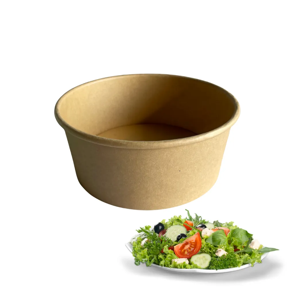 Kerek salátás tál 750 ml, kraft papír- 50 db | Zsírálló, környezetbarát elviteles tál